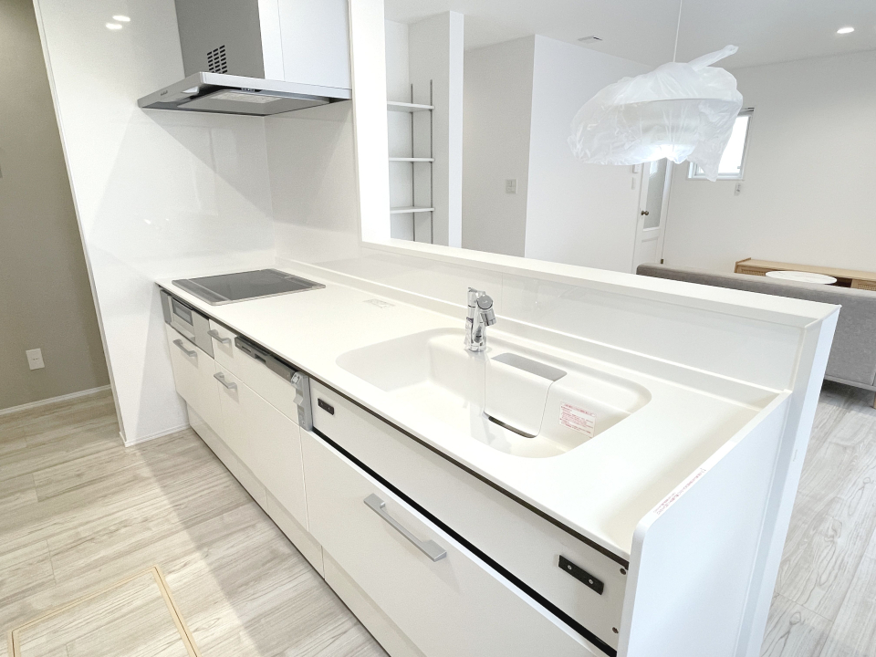 温水洗浄便座、トイレ2ヶ所、追焚機能、浴室乾燥機、システムキッチン、カウンターキッチン、IHクッキングヒーター、浄水器、食器洗浄乾燥機、ウォークインクローゼット、給湯、室内洗濯機置場、洗髪洗面化粧台、照明器具、複層ガラス、エアコン、モニタ付インターホン、駐車場2台分 |