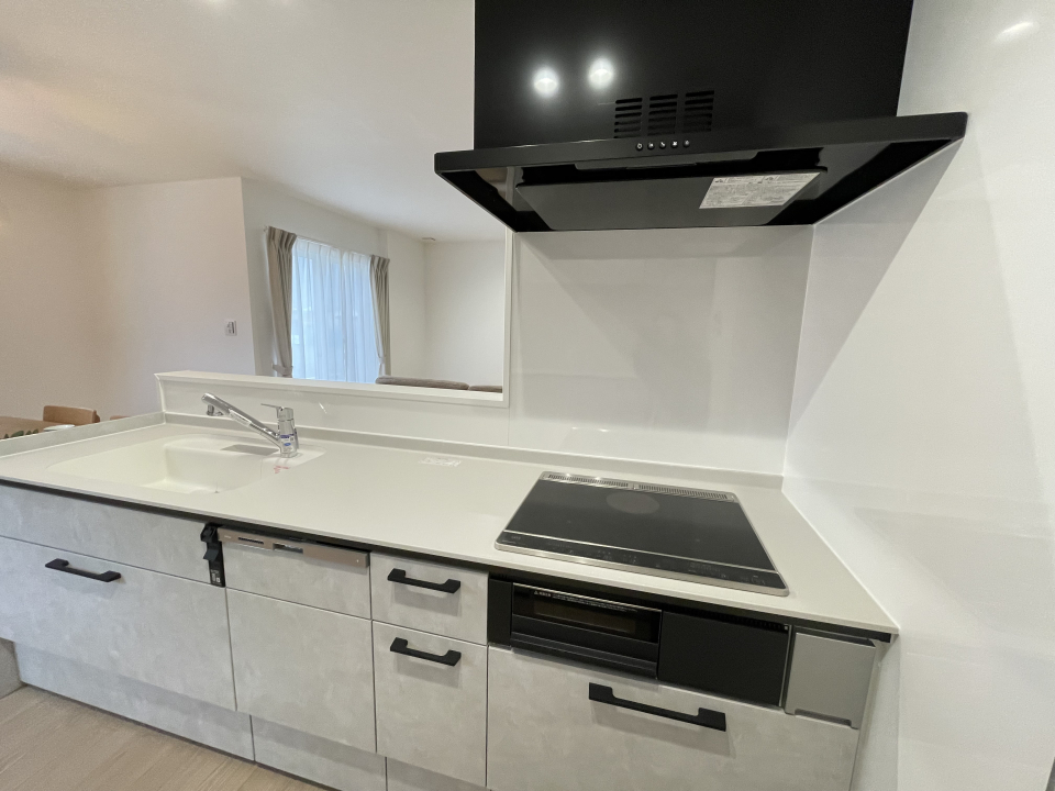 温水洗浄便座、トイレ2ヶ所、追焚機能、浴室乾燥機、システムキッチン、IHクッキングヒーター、浄水器、食器洗浄乾燥機、収納スペース、ウォークインクローゼット、給湯、室内洗濯機置場、洗髪洗面化粧台、照明器具、複層ガラス、エアコン、モニタ付インターホン、ディンプルキー、駐車場2台分 |