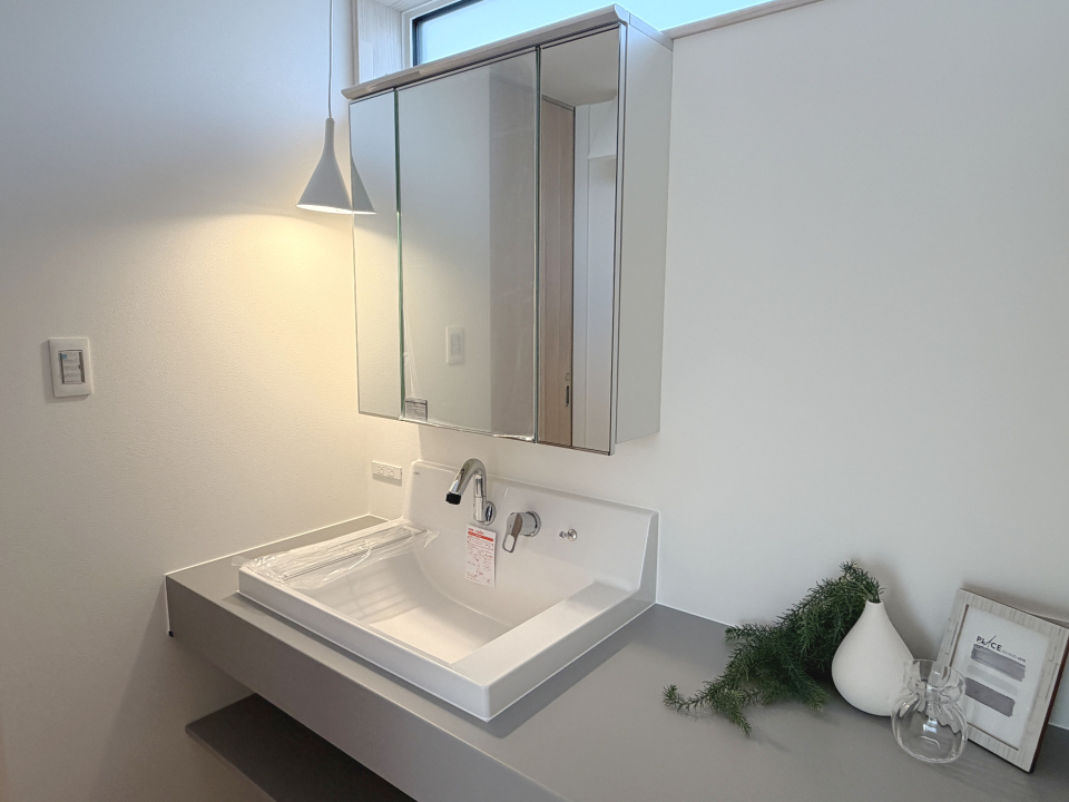 温水洗浄便座、トイレ2ヶ所、追焚機能、浴室乾燥機、システムキッチン、カウンターキッチン、IHクッキングヒーター、浄水器、食器洗浄乾燥機、ウォークインクローゼット、給湯、室内洗濯機置場、洗髪洗面化粧台、照明器具、複層ガラス、エアコン、モニタ付インターホン、テラス、駐車場2台分 |