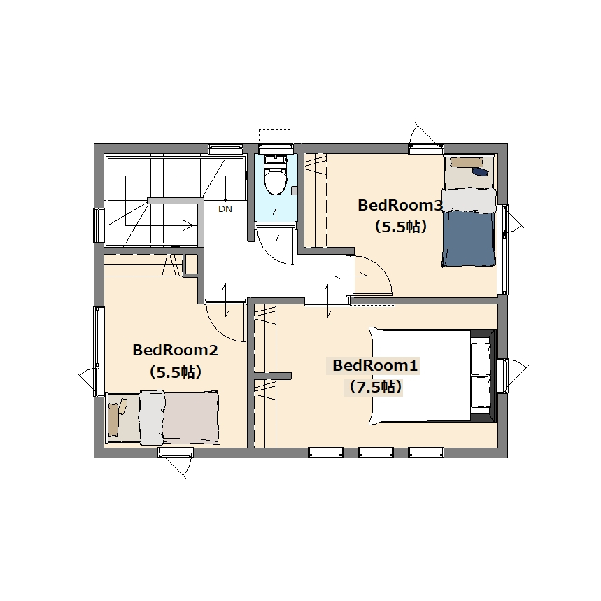 LDK11.5畳(1階) 洋室7.5畳(2階) 洋室5.5畳(2階) 洋室5.5畳(2階) |