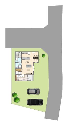 温水洗浄便座、トイレ2ヶ所、追焚機能、浴室乾燥機、システムキッチン、IHクッキングヒーター、食器洗浄乾燥機、収納スペース、室内洗濯機置場、洗髪洗面化粧台、照明器具、複層ガラス、エアコン、モニタ付インターホン、ディンプルキー、駐車場2台分 |