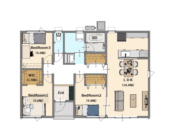 LDK16.0畳(階) 洋室5.0畳(階) 洋室5.0畳(階) 洋室5.0畳(階) |