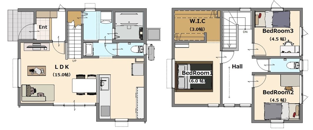 LDK15.0畳 洋室6.0畳(2階) 洋室4.5畳(2階) 洋室4.5畳(2階) |