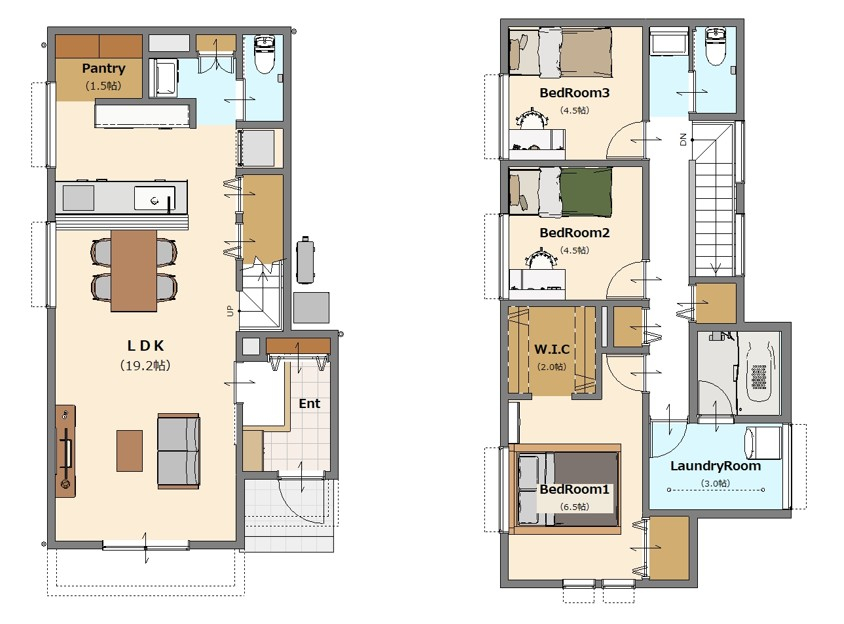 LDK19.2畳,洋室6.5畳(2階) 洋室4.5畳(2階) 洋室4.5畳(2階) |