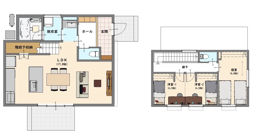 LDK17.0畳(1階) 洋室6.8畳(2階) 洋室4.5畳(2階) 洋室4.5畳(2階) |