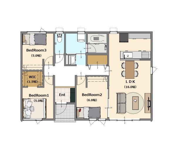 LDK16.0畳(1階) 洋室6.0畳(1階) 洋室5.0畳(1階) 洋室5.0畳(1階) |