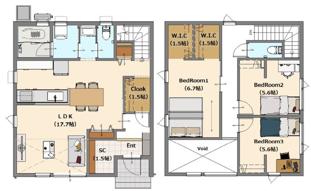 LDK17.7畳(1階) 洋室6.7畳(2階) 洋室5.6畳(2階) 洋室5.6畳(2階) |