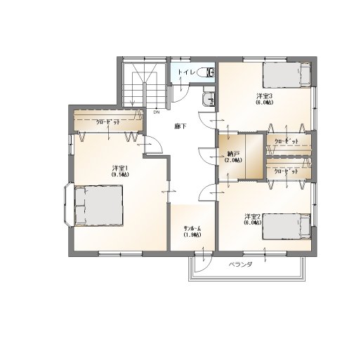 和室8.0畳(1階) 洋室9.5畳(2階) 洋室6.0畳(2階) 洋室6.0畳(2階) |