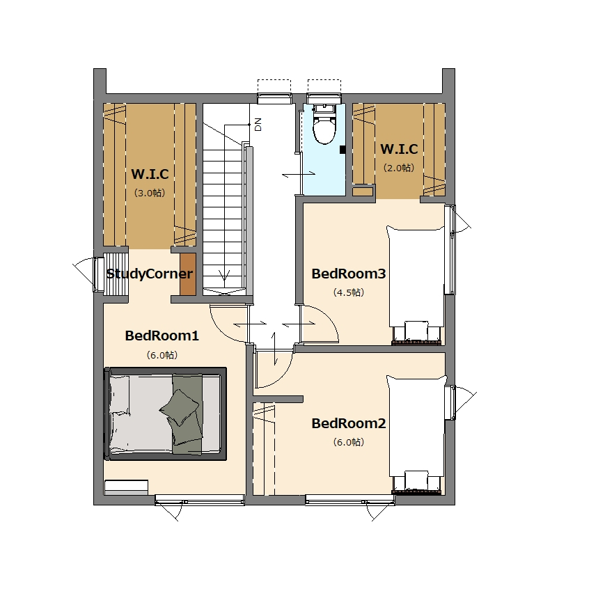 LDK17.0畳(1階) 洋室6.0畳(2階) 洋室6.0畳(2階) 洋室4.5畳(2階) |