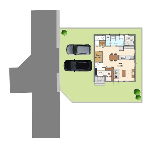 LDK17.7畳(1階) 洋室6.7畳(2階) 洋室5.6畳(2階) 洋室5.6畳(2階) |