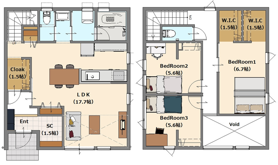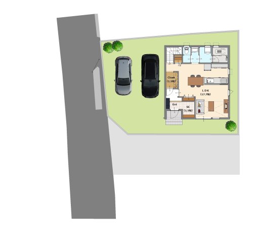 LDK17.7畳(1階) 洋室6.7畳(2階) 洋室5.6畳(2階) 洋室5.6畳(2階) |